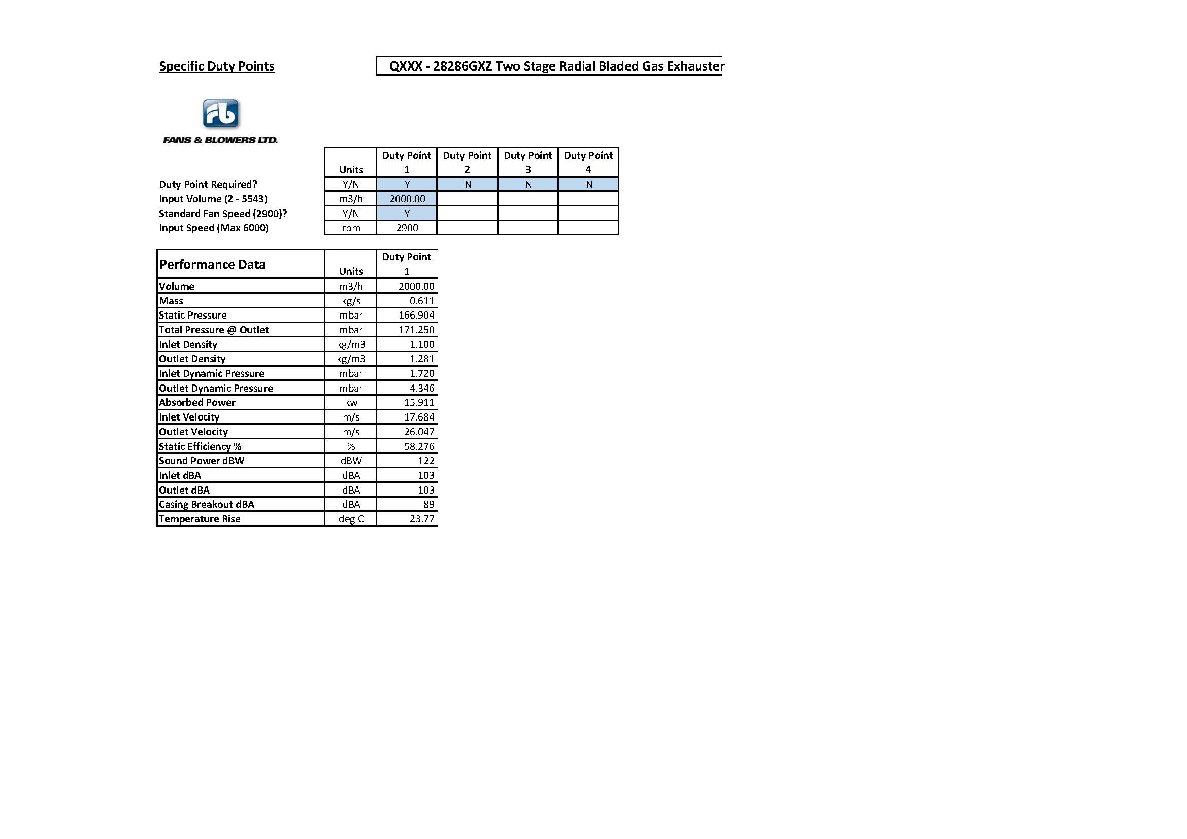 2 Stage blower – See performance curve for details