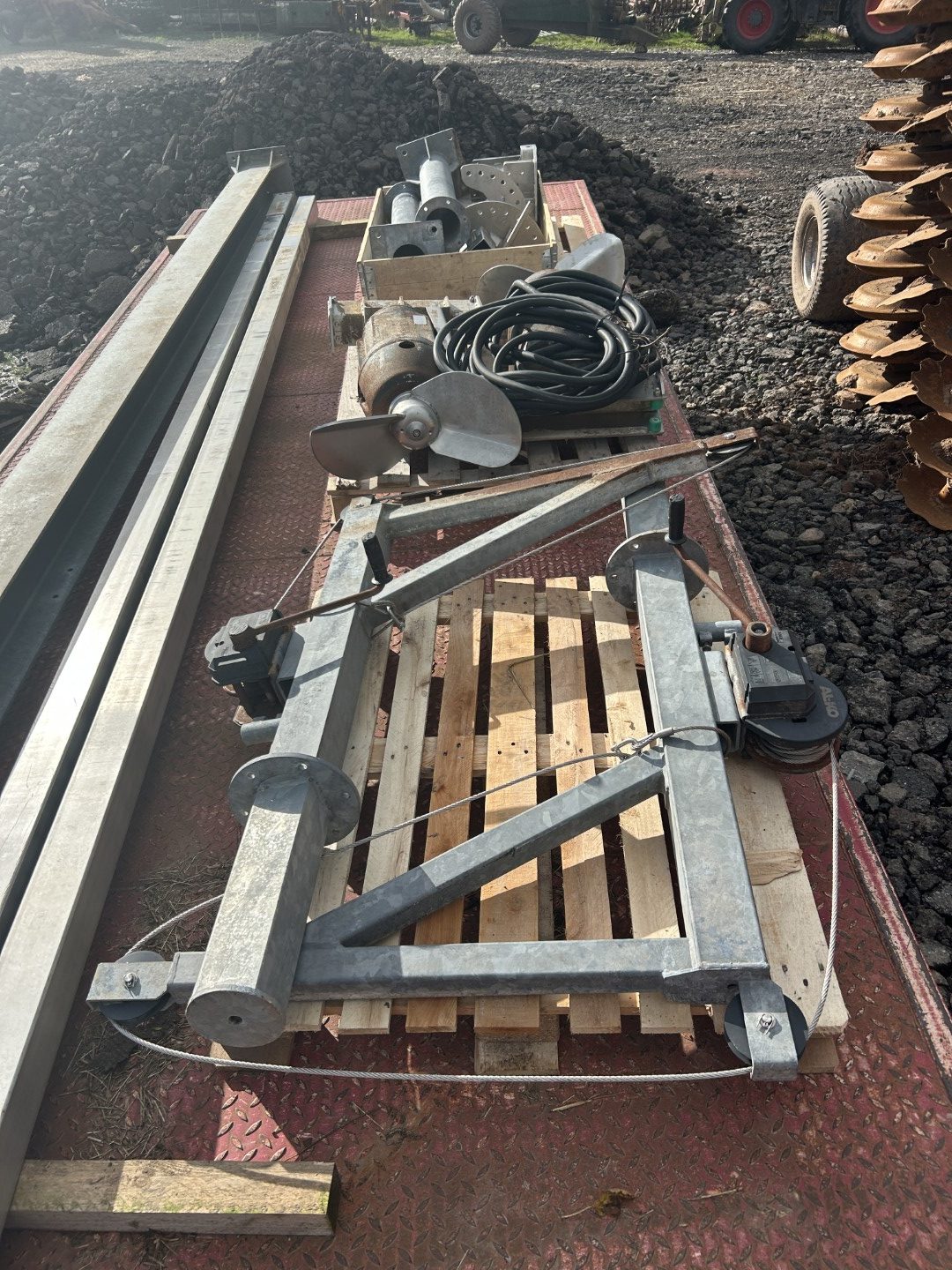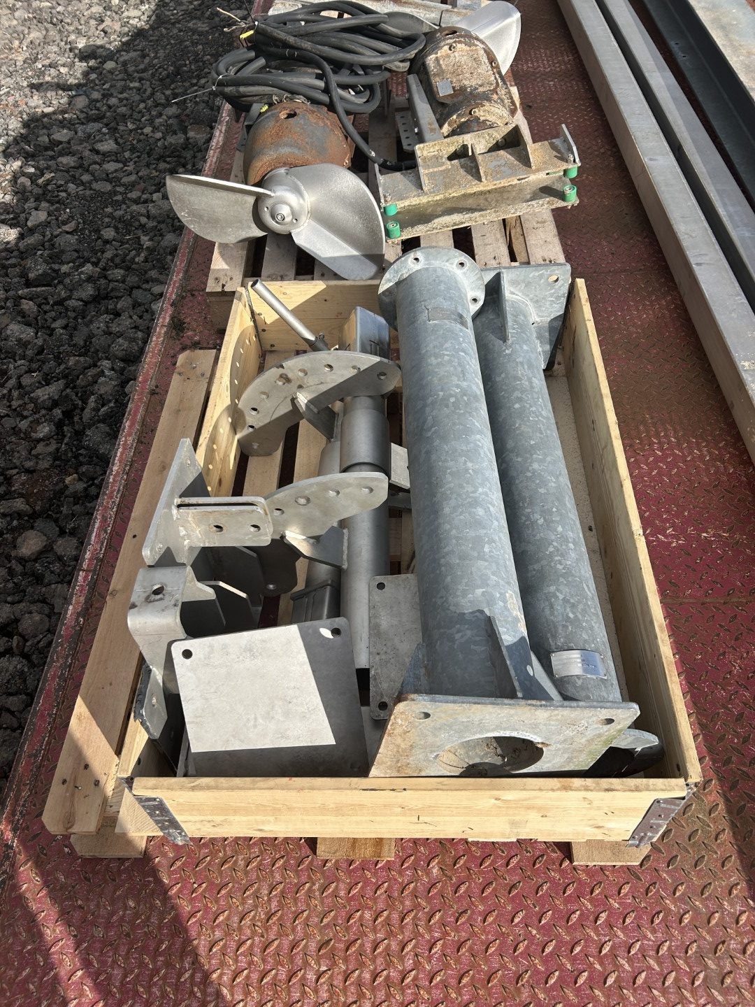 Complete submersible mixer sets complete with davit, guide rails and brackets for sale. Removed when digestate storage tank was covered and converted to gas mixing.
