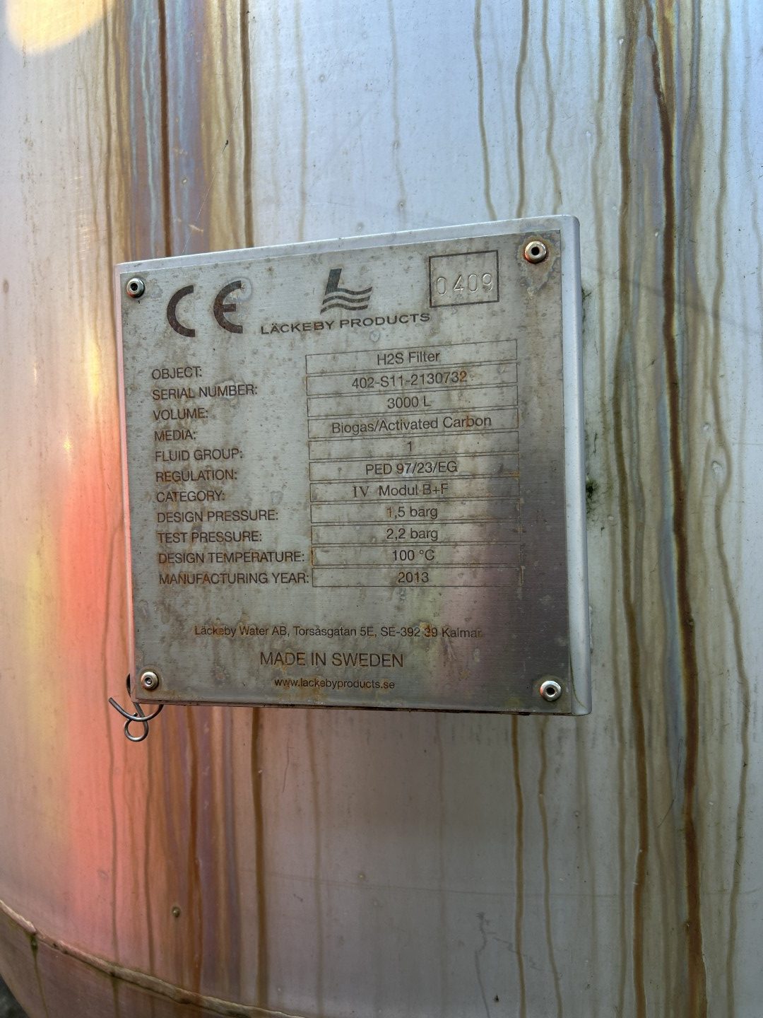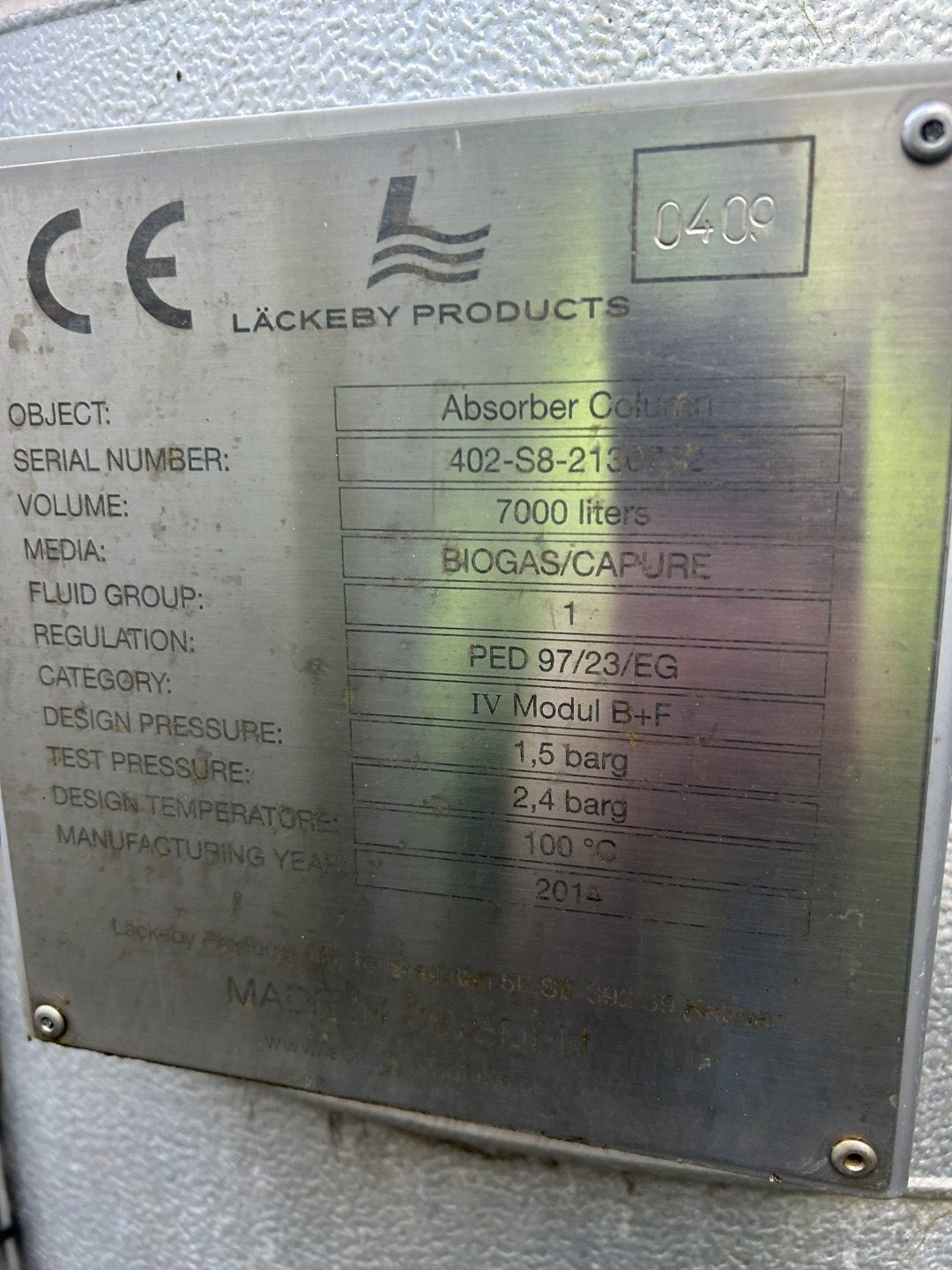 Complete biogas upgrading system available including assorted spare parts.