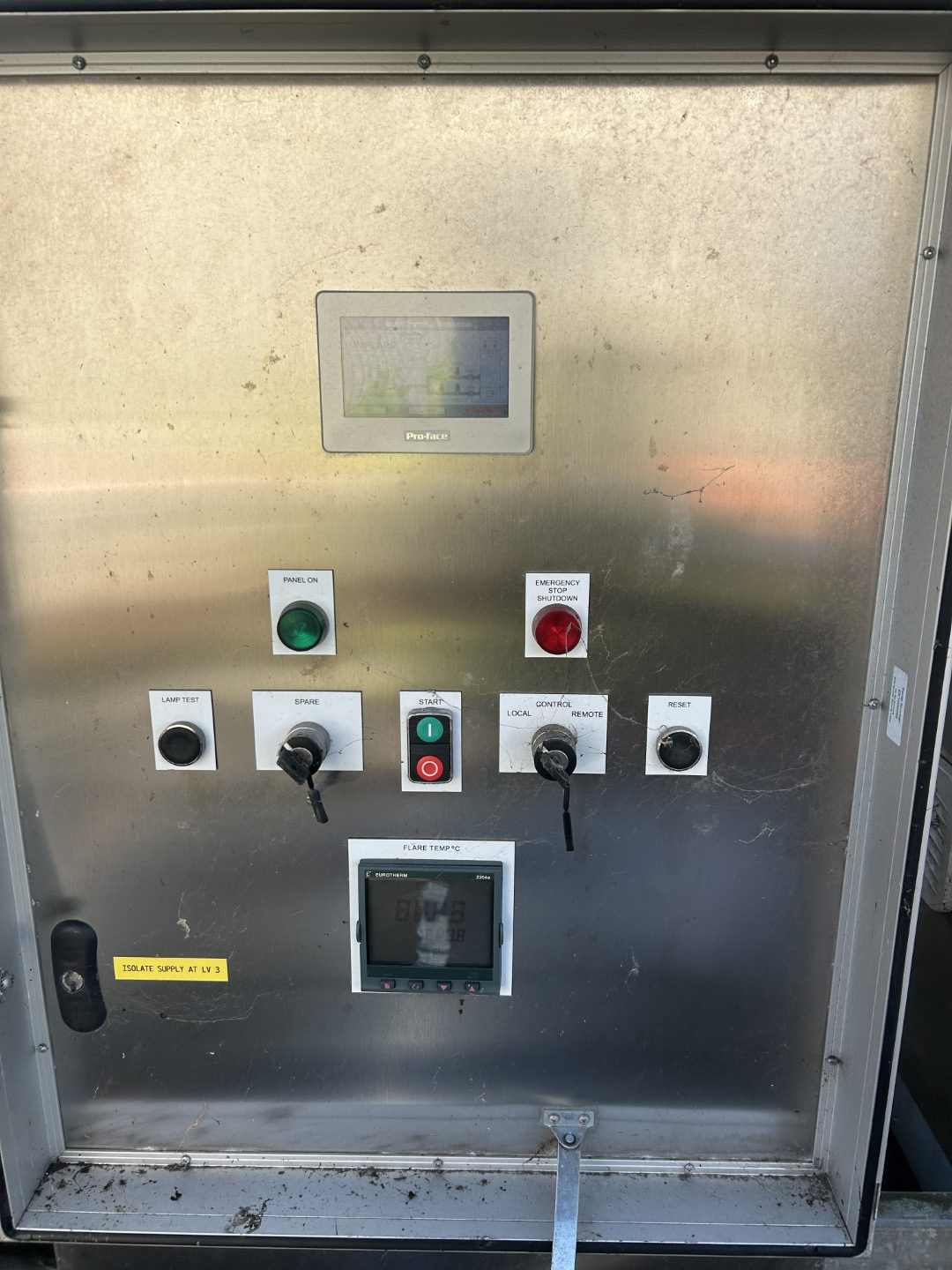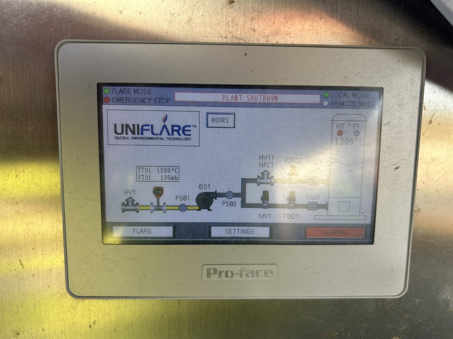Uniflare 1500m3/hr biogas flare with booster and control panel for sale.